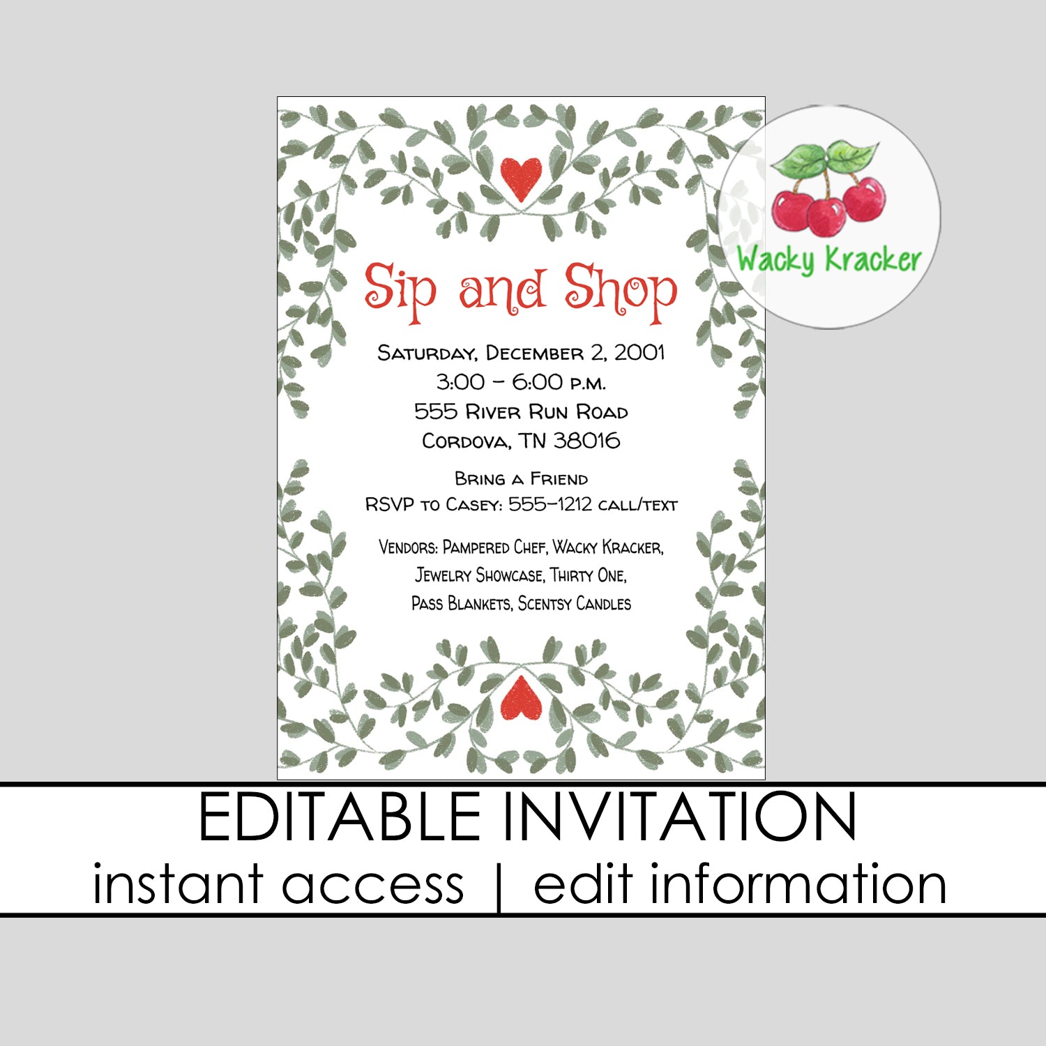 • This is an instant download file. You will not receive a printed product. Edit and print yourself.