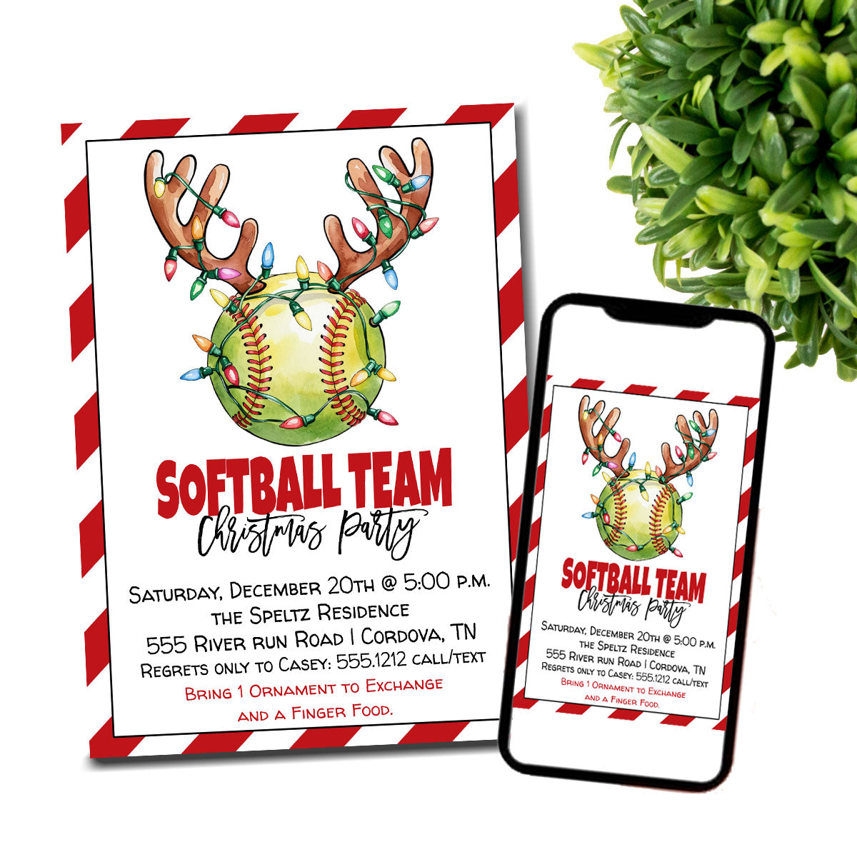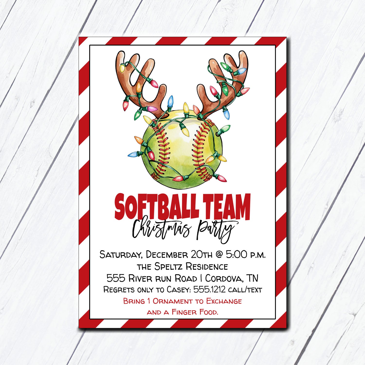 Softball Team Christmas Party Invitation