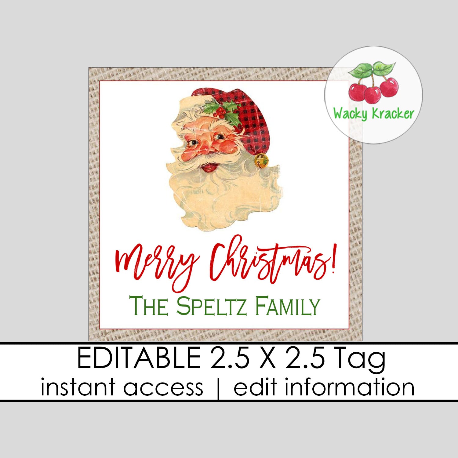• Size: 2.5″ X 2.5″ (There are 6 tags on an 8.5X11 page with trim marks)